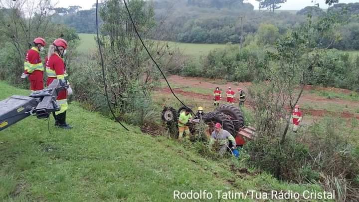 O fato ocorreu quando o condutor de um trator trafegava pelo acostamento no sentido Interior/capital, e por motivo desconhecido acabou caindo no barranco e tombando.