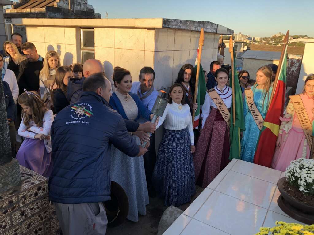 Neste sábado, 10 de setembro, foi realizado no Cemitério de Espumoso a tradicional cerimônia do acendimento da chama crioula. Neste dia em especial, uma homenagem durante o ato foi realizada em frente ao túmulo do tradicionalista espumosense Aule Tramontini do Amarante, que foi um dos percursores do tradicionalismo gaúcho no município. Nascido no dia 10 de novembro de 1936 na localidade do Passo Espumoso, na época distrito de Soledade, Aule Amarante foi uma voz ativa na comunidade sempre presando pelos costumes gaúchos, sendo pai, amigo, companheiro e desenvolvendo vários trabalhos em prol da comunidade.