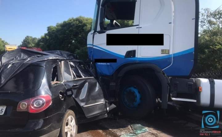 Um automóvel Spacefox colidiu com um caminhão de transporte de laticínios. O Batalhão Rodoviário, ambulâncias do SAMU, Corpo de Bombeiros e IGP – Instituto Geral de Perícias atendem a ocorrência.