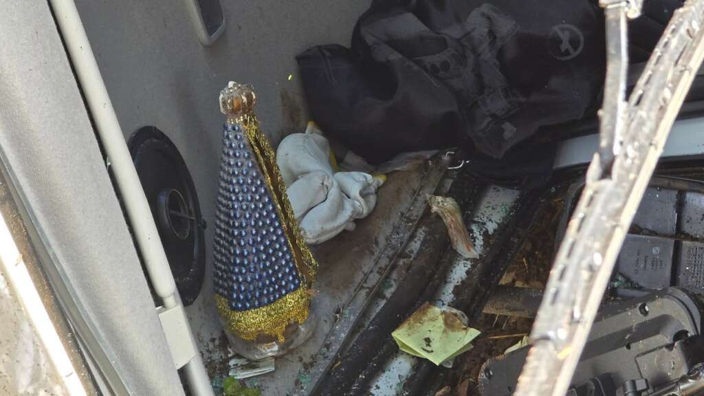 Um fato que chamou a atenção foi a imagem de Nossa Senhora Aparecida, intacta e em pé, dentro da cabine do veículo.