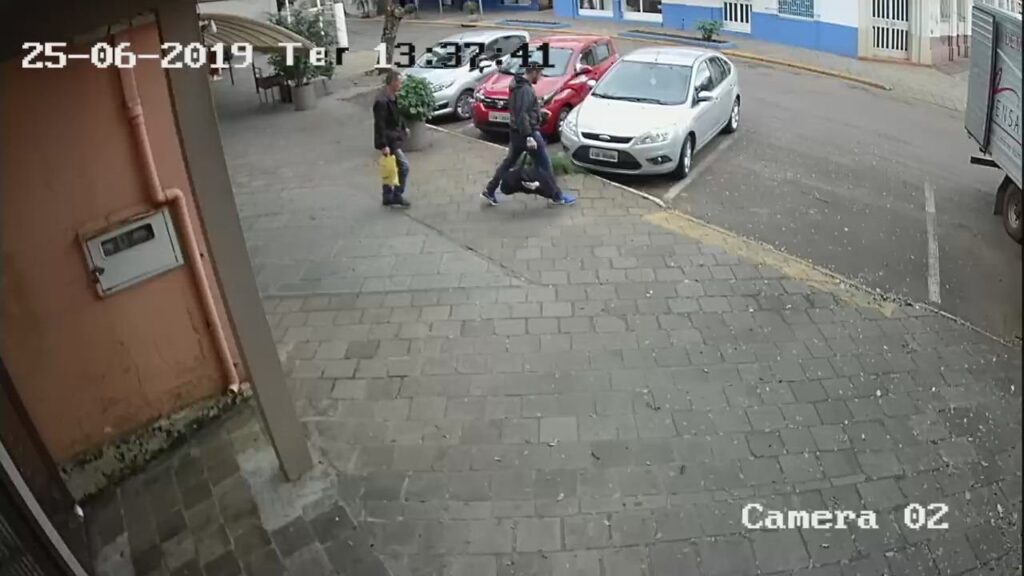 A polícia divulgou há pouco as imagens que mostram a dupla que assaltou a joalheria e óptica Grando em Espumoso. As imagens mostram dois homens chegando na joalheria as 13 horas e 27 e minutos e saindo 10 minutos depois, já com duas mochilas com os produtos roubados.