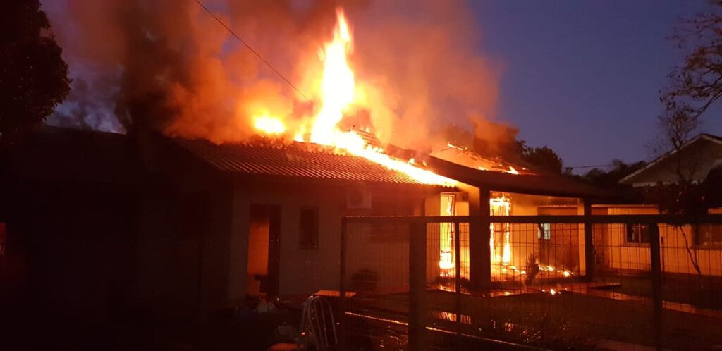 A casa pertence ao colega de imprensa, Tiago Trindade, da Rádio Studio FM de Tapera. Os bombeiros trabalham neste momento para conter as chamas e impedir que elas atinjam propriedades vizinhas.