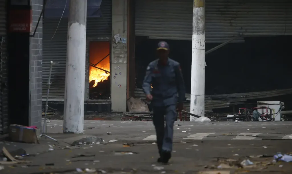 “Estima-se que cerca de 200 pequenas lojas tenham sido atingidas pelo incêndio, que resultou no colapso do telhado. Entretanto, a Defesa Civil informa que não há risco de colapso estrutural total da edificação”, informou o órgão.