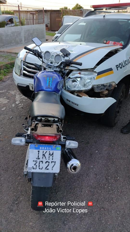 A motocicleta era conduzida por um indivíduo em atitude suspeita. Tentado efetuar a abordagem através de sinais sonoros e luminosos de parada, o homem fugiu da guarnição, empreendendo fuga por diversas ruas, atravessando cruzamentos preferenciais em alta velocidade e realizando diversas manobras de risco à integridade de pedestres.