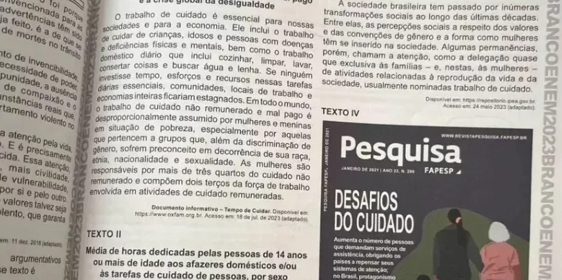 O Inep ressaltou que o acionamento da Polícia Federal é um procedimento padrão diante de situações como essa. A imagem divulgada nas redes mostra a página com o tema da redação e os textos motivacionais, que auxiliam os estudantes na elaboração de suas propostas de intervenção. O tema da redação deste ano é “Desafios para o enfrentamento da invisibilidade do trabalho de cuidado realizado pela mulher no Brasil”.