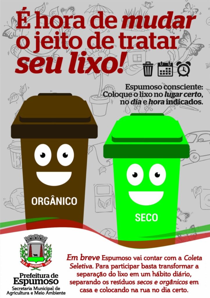 Pensando nisso, a prefeitura de Espumoso está adotando a coleta seletiva de lixo. Você separa o que produz em casa e o caminhão de coleta vai recolher, em dias alternados, os resíduos secos e orgânicos.