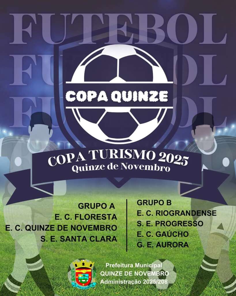 Inicia neste final de semana a Copa Turismo ( Copa Quinze) de Quinze de Novembro. As equipes foram divididas em dois grupos conforme especificado abaixo: