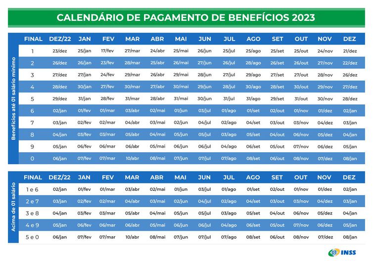 Em nota, o instituto destacou que o calendário de pagamentos considera o número final do cartão, sem considerar o dígito verificador que aparece após o traço. O crédito é feito primeiramente para os que têm final de benefício 1. No dia seguinte, para os de final 2 e assim sucessivamente, sempre em dias úteis.