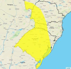 Áreas com alerta do Inmet para tempestade no RS