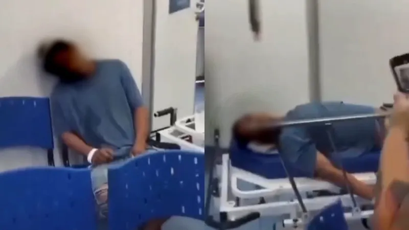 Uma pessoa da UPA se aproxima dele, que não reage. Em seguida, José é colocado na maca por um funcionário.