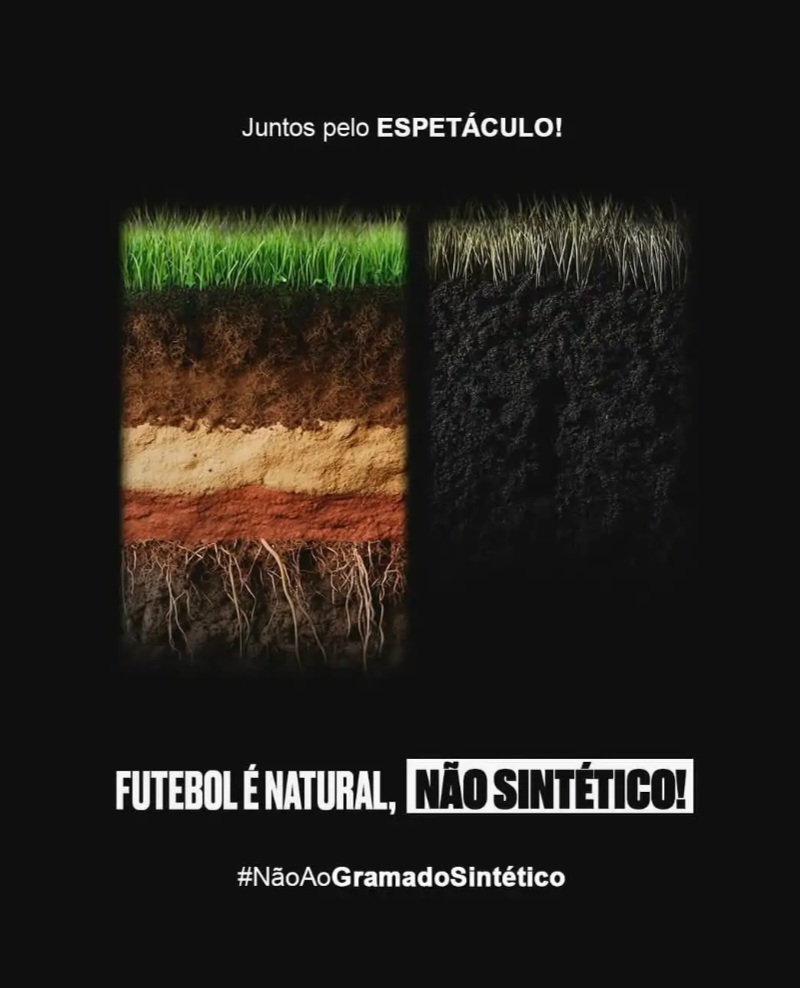 Atualmente, os estádios de Palmeiras (Allianz Parque) e Botafogo (Nílton Santos) são dotados da grama sintética. Vale ressaltar que jogadores desses clubes não compartilharam o post.