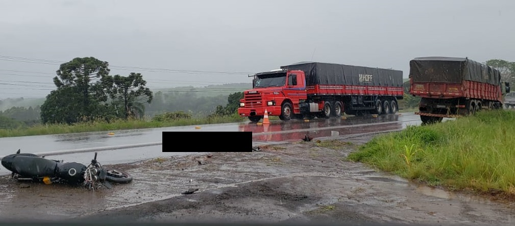 Na manhã desta quinta-feira (28), um grave acidente de trânsito envolvendo uma moto e um caminhão, deixou um jovem morto, na ERS-153 em Tio Hugo.