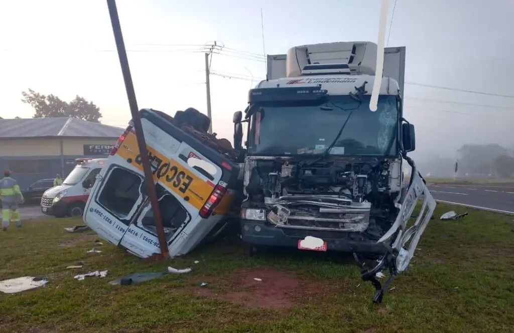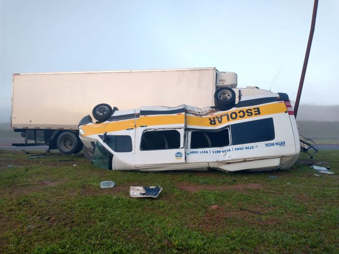 Conforme apurado pela reportagem no local, uma van escolar, Mercedes Benz Sprinter, de Estrela, que recolhe estudantes, atravessava a rodovia na altura do acesso a localidade de Linha Glória, no km 362. Devido a intensa neblina o motorista não teria visto a aproximação de um caminhão frigorífico, placa de Teutônia, que seguia no sentido capital – interior.