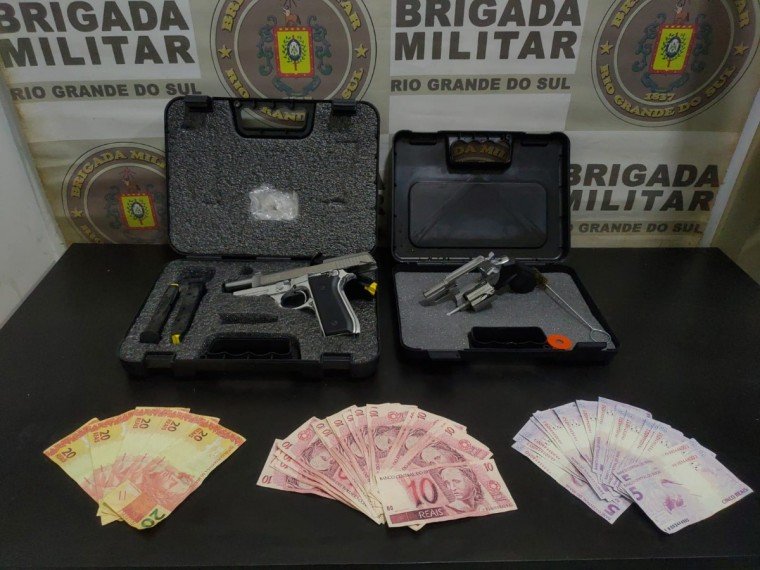 Durante a noite, em Passo Fundo, uma guarnição do 3º Regimento de Polícia Montada identificou indivíduos suspeitos em frente a uma residência, na Vila Cruzeiro. Um deles tentou fugir, mas o outro permaneceu no local. Os dois acabaram presos depois que os PMs localizaram uma arma de fogo e uma quantia em dinheiro.