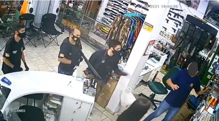 Durante a tarde de ontem (13), homens vestindo roupas da Polícia Civil entraram em uma loja de artigos de Caça e Pesca e logo anunciaram o assalto. Um deles portava uma arma longa.