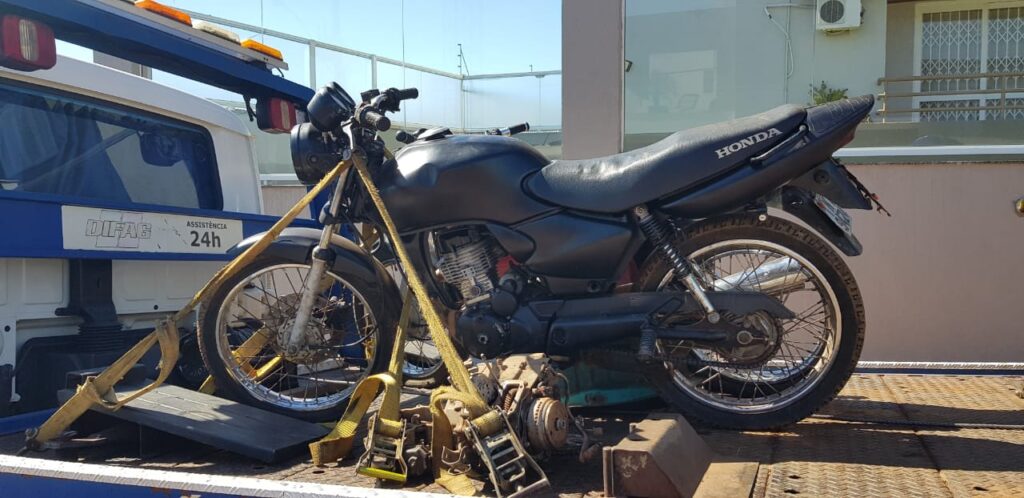 Na casa do acusado também foram apreendidas uma motocicleta com licenciamento vencido, um motor de motocicleta e a outro moto que ele conduzia, que estava com o número do chassi superior suprimido, mas o inferior estava intacto e constava como produto de furto na cidade de Xv de Novembro há cerca de 15 dias.