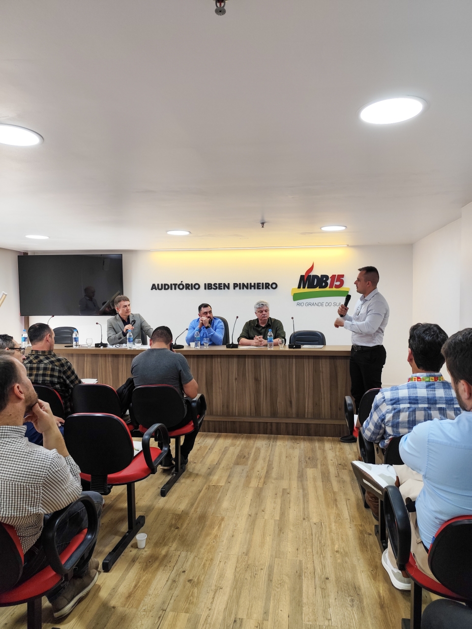 A atividade foi conduzida pelo presidente estadual do MDB e deputado estadual Vilmar Zanchin, responsável pelo processo político-eleitoral de 2026. Zanchin liderou um importante debate, contextualizando o cenário atual e reforçando a unidade do MDB em torno da pré-candidatura do vice-governador Gabriel Souza ao Palácio Piratini.