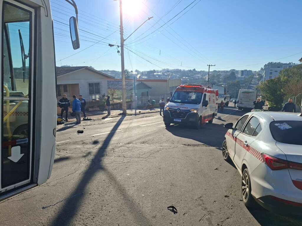 Um motociclista ficou gravemente ferido na manhã desta terça-feira, 12/08, após uma colisão com um carro na Avenida Júlio de Castilhos, no centro de Soledade.