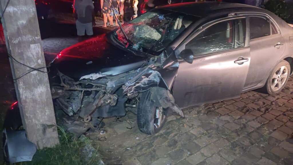 Na Rua Jorge Dipp, o motorista perdeu o controle do veículo e colidiu contra um poste, próximo a Rua Getúlio Vargas. O motorista teria fugido a pé para sua casa.
