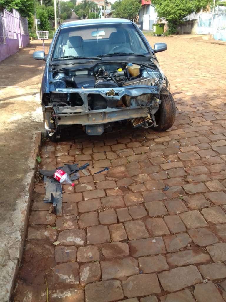 Uma acidente de trânsito ocorrido por volta das 02 horas e 30 minutos da madrugada deste sábado, na Rua Colorado, no Bairro Martini deixou danos de grande monta em um veículo GOL que estava estacionado em frente a uma residência.