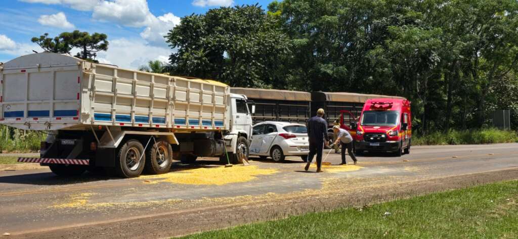 Uma colisão envolvendo um caminhão e um automóvel Hyundai HB20, ambos com placas de Tapera, deixou um motorista ferido na tarde desta segunda-feira, (02). O acidente ocorreu no trevo secundário de acesso ao município de Tapera, anexo à ERS-223.