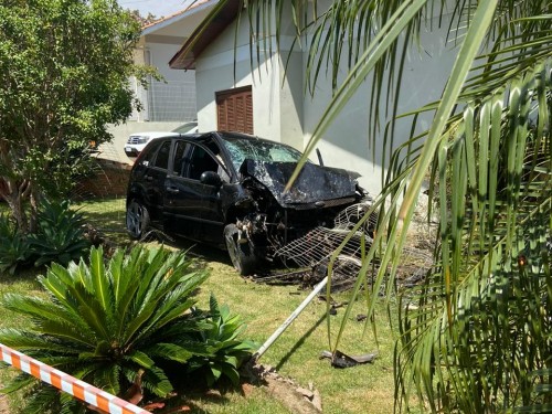 Ao descer a rua, por motivos desconhecidos, o condutor perdeu o controle do veículo, que atingiu uma casa.