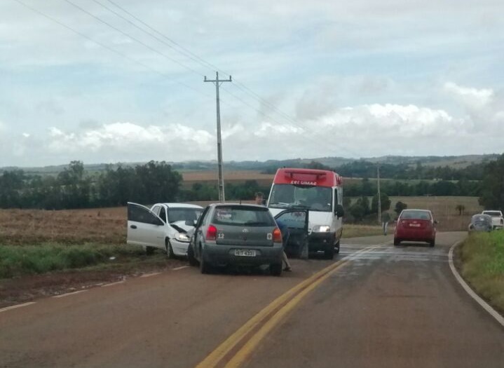 Uma colisão frontal envolvendo um veículo GOL com placas de Alto Alegre e um Celta de Carazinho deixou três pessoas feridas na VRS 817. O acidente aconteceu por volta das 11:40 desta manhã na descida antes da ponte sobre o Rio Butiá, entre os municípios de Espumoso e Alto Alegre.