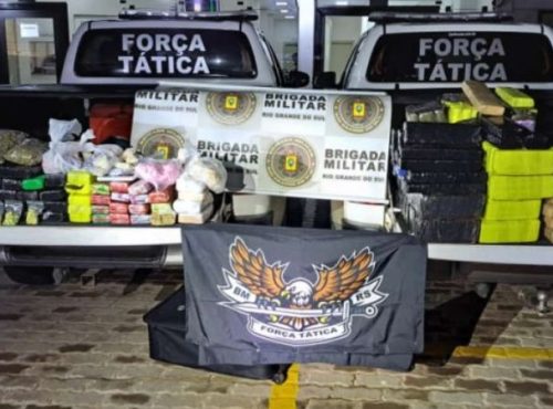 Após serem acionados para uma ocorrência de patrulha Maria da Penha no bairro Cohab, os policiais militares localizaram grande quantidade de drogas. Foram apreendidos 245 tijolos de maconha, totalizando 185,9 quilos, cinco quilos de crack, aproximadamente 2380 comprimidos de ecstasy e duas balanças de precisão.