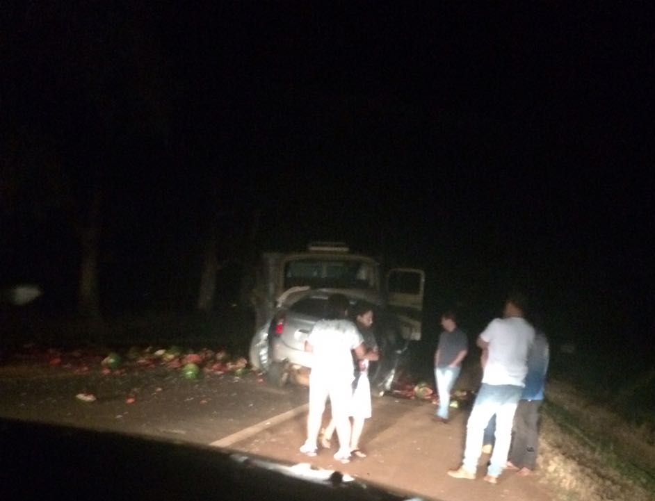 Segundo informações da PRE de Tapera, foi uma colisão frontal entre um veículo Picasso de Selbach e um caminhão que transportava melancias.