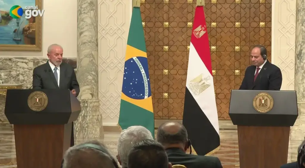 Na abertura de sua fala, o presidente pontuou que, após a reunião com Al-Sisi e a assinatura de uma série de acordos bilaterais entre Egito e Brasil, “deveríamos estar falando do aumento da produção de alimentos, crescimento econômico, distribuição de renda e nós estamos falando em guerras”.