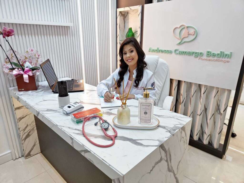 Dentre as especialidades no atendimento, Andressa realiza Terapias Fonoaudiólogas nas áreas de fala, linguagem, Motricidade Orofacial, Teste da Orelhinha, Audiometria Ocupacional, e também atendimentos domiciliares.