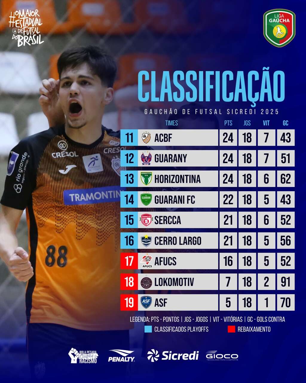 Foram definidos os confrontos das Oitavas de final do Gauchão de Futsal 2025. O Guarany terá pela frente a Age Futsal, jogo de ida em Espumoso e o jogo da volta em Guaporé, com datas a definir.
