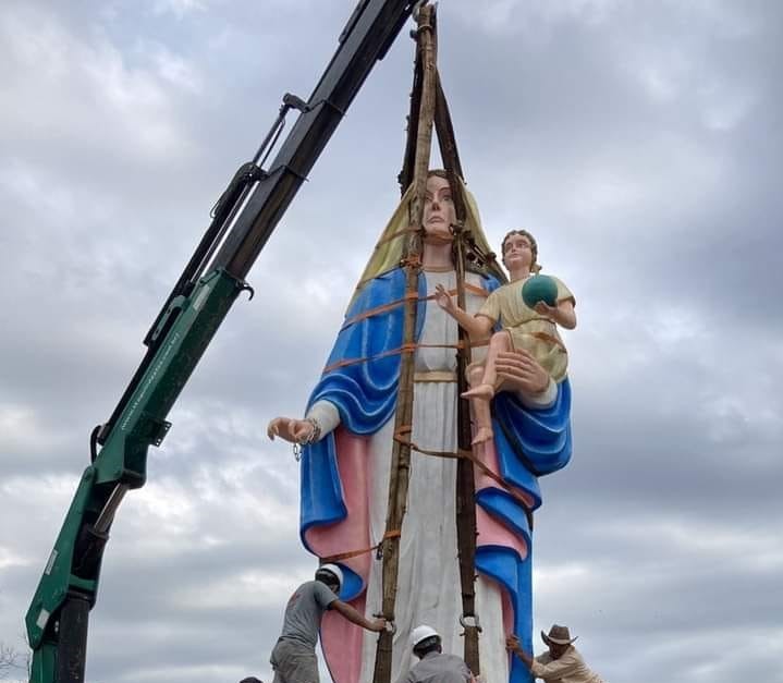 A obra da Praça Nossa Senhora dos Navegantes no município de Mormaço está em pleno andamento e a cada dia tomando a forma prevista no projeto inicial. Nessa terça-feira, 05/07, mais um importante passo foi dado, com a colocação da estátua da padroeira.