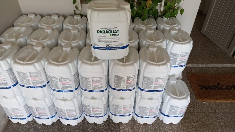 O agrotóxico Paraquat, proibido no Brasil devido à sua alta toxicidade, foi utilizado pela célula criminosa. Embora tenha sido amplamente utilizado na agricultura desde os anos 1960, estudos revelaram sua associação com doenças degenerativas e alta toxicidade, levando à proibição em muitos países, incluindo o Brasil a partir de 2017. Atualmente, o Paraquat contrabandeado, geralmente originado da China ou da Índia, entra no país através das fronteiras com a Argentina e o Uruguai. Além de ser um produto ilegal, sua comercialização causa prejuízos às empresas nacionais devido à concorrência desleal e à evasão fiscal.