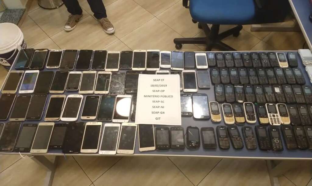 Além dos celulares, foram apreendidos: mil carregadores, 397 chips, 314 fones de ouvido, 348 facas e tesouras, 29 roteadores e 19 pen drives, além de quatro artefatos explosivos e três armas de fogo.