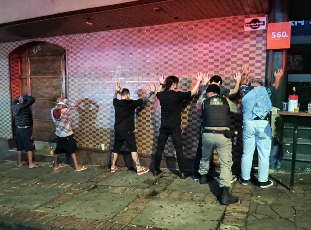 Após as abordagens das casas noturnas e dos estabelecimentos, a BM fez um mutirão de abordagens na Rua Independência, abordando todos que estavam na via.