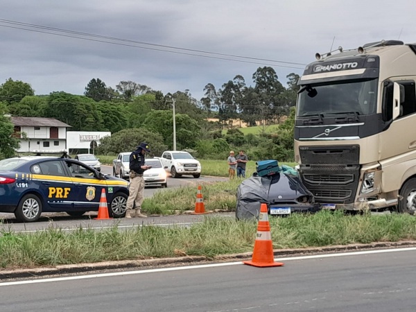 Um Fiat Palio, emplacado no município de Imbé, ao acessar a BR 158 foi colhido por uma carreta Bitrem, com placas de Santa Catarina.