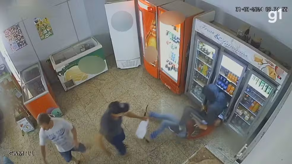 As imagens mostram também quando um dos filhos de Luiz reage e é agredido. Nesse momento, as vítimas se envolvem em uma luta corporal e Fábio é baleado. O pai sai do local e retorna agredindo um dos criminosos com um bastão. Após, é atingido por um tiro à queima-roupa.