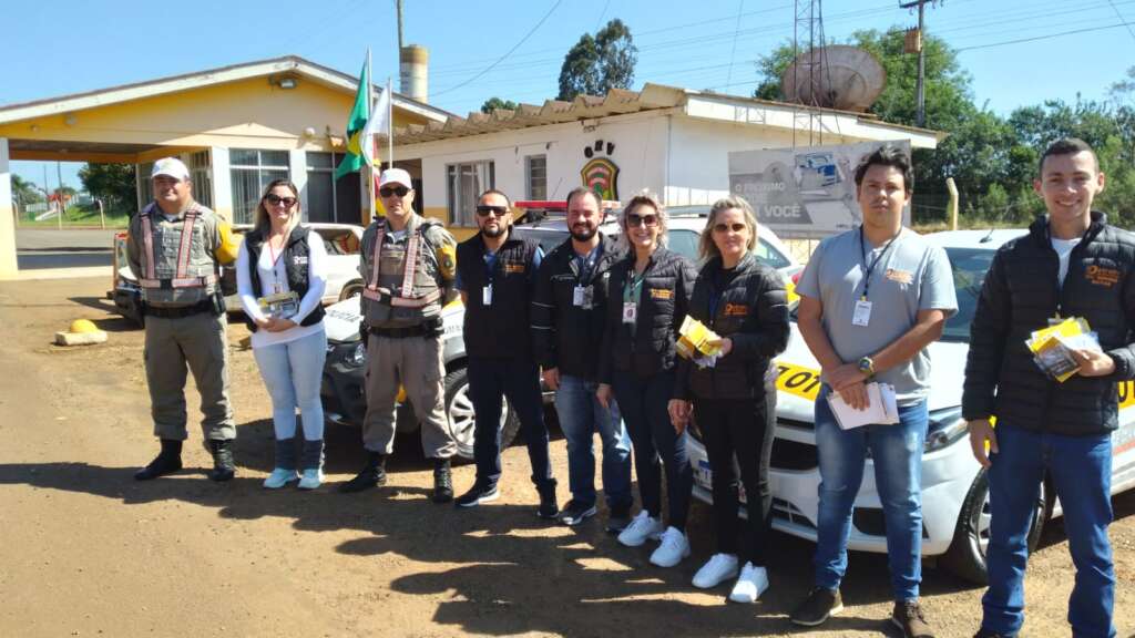 Na sequência, estão sendo desenvolvidas atividades de abordagem aos condutores, junto a sede do comando rodoviário, com a participação do Comandante SD Cassini e seus comandados, equipe da Direção, Instrutores e atendentes do CFC Geremias.