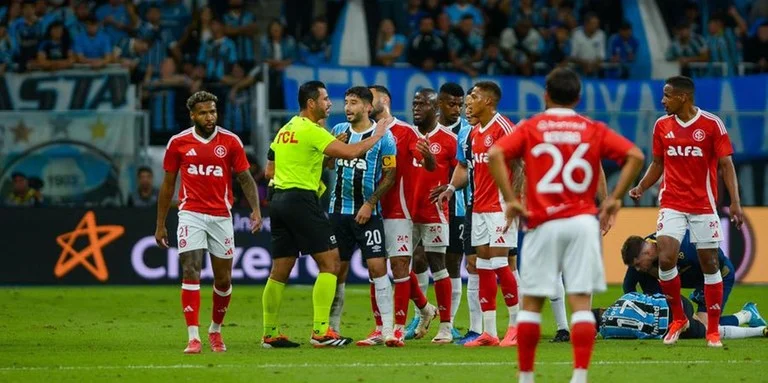 Ao final do Gre-Nal, os dirigentes do Grêmio protestaram muito contra a arbitragem de Machado no túnel para os vestiários. A súmula do jogo, no entanto, não registra nada neste sentido.