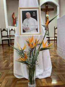 Um quadro do Papa Francisco foi colocado no altar da Igreja Matriz, onde os fiéis que desejarem poderão fazer suas homenagens ao Pontífice morto na segunda-feira. A Igreja fica aberta o dia todo.