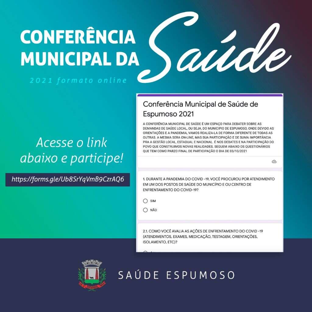 A Conferência Municipal de Saúde tem a finalidade de avaliar a situação de saúde da população, a estrutura das Redes de Serviços e de Atenção à Saúde, os processos de trabalho da Secretaria Municipal de Saúde e formular diretrizes para subsidiar a elaboração do Plano Municipal de Saúde.
