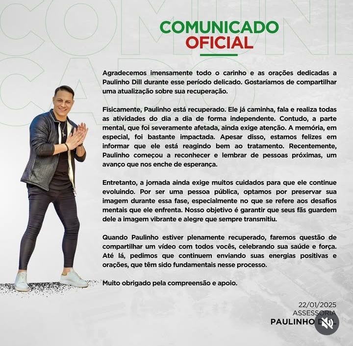 A equipe de Paulinho agradece o apoio e a solidariedade recebidos e pede que as pessoas continuem a apoiar o músico em sua jornada de recuperação.