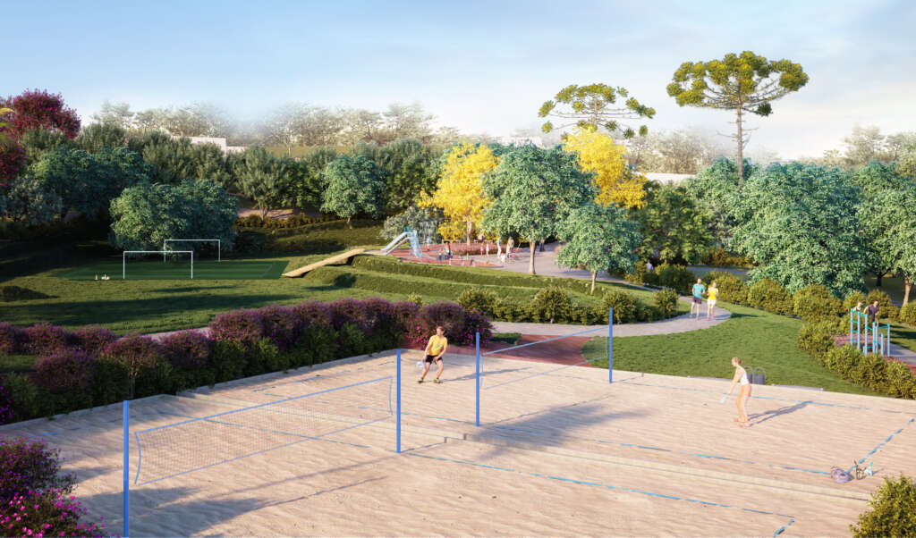 Com uma infraestrutura pensada para o bem-estar do usuário, o conta com um parque central de lazer que será entregue com todos os equipamentos urbanos e paisagismo. O parque conta com recantos de lazer como redário, lago contemplativo, fitness, playground, quadra de beach tennis, espaço pet, cancha de bocha, bicicletário e ciclovias, e quadra de futebol de grama.