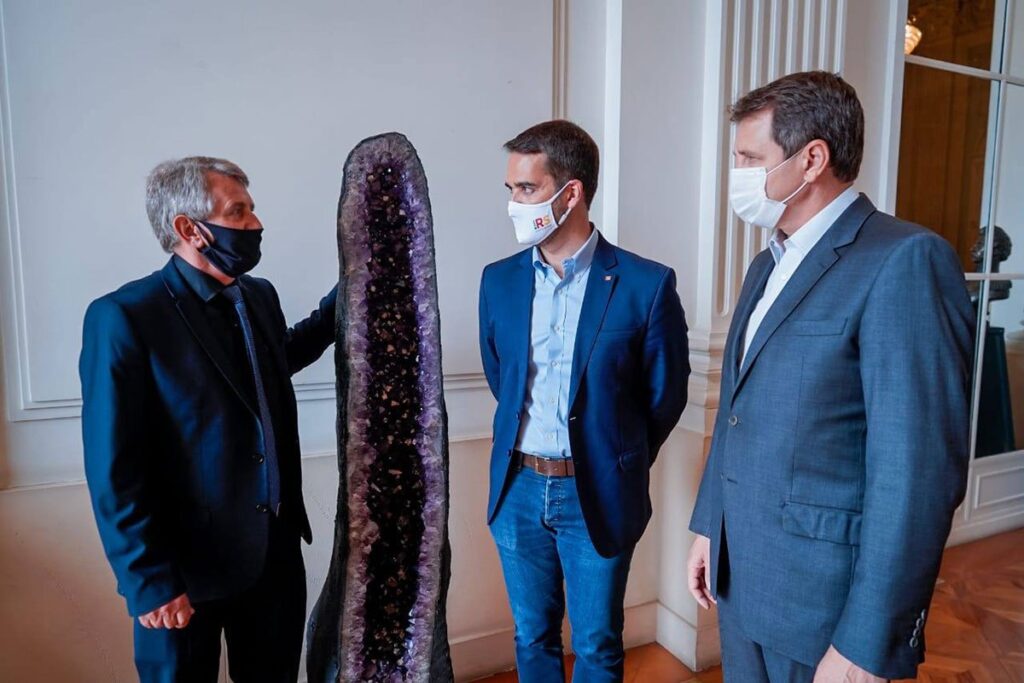 O interesse por ter pedras preciosas na sede do executivo estadual surgiu após integrantes do Governo observarem capelas de ametistas na sala da presidência do legislativo gaúcho. “Assim que ficamos sabendo, mobilizamos alguns associados para viabilizar esta doação. Nosso agradecimento as empresas Colgemas, Bortoluzzi, Bagatini e Legep, assim como ao Pedro Lando e ao Cella, que doaram as bases. Também ressalto o empenho do Fausto Ferreira, que auxiliou nesta intermediação”, completa.