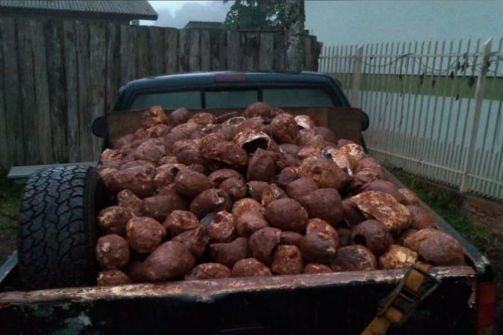 Três indivíduos em uma caminhonete foram vistos furtando as pedras em uma propriedade rural