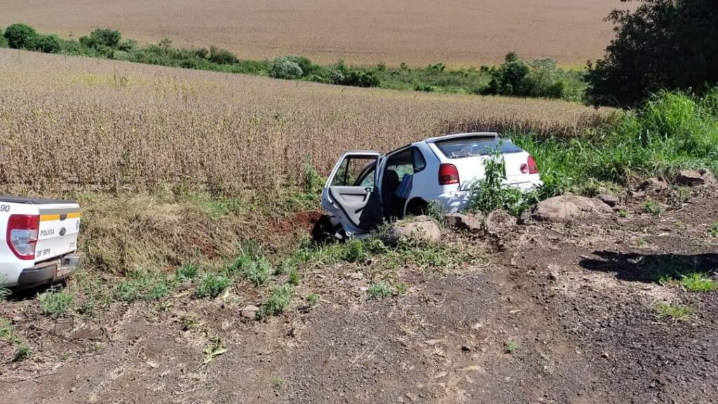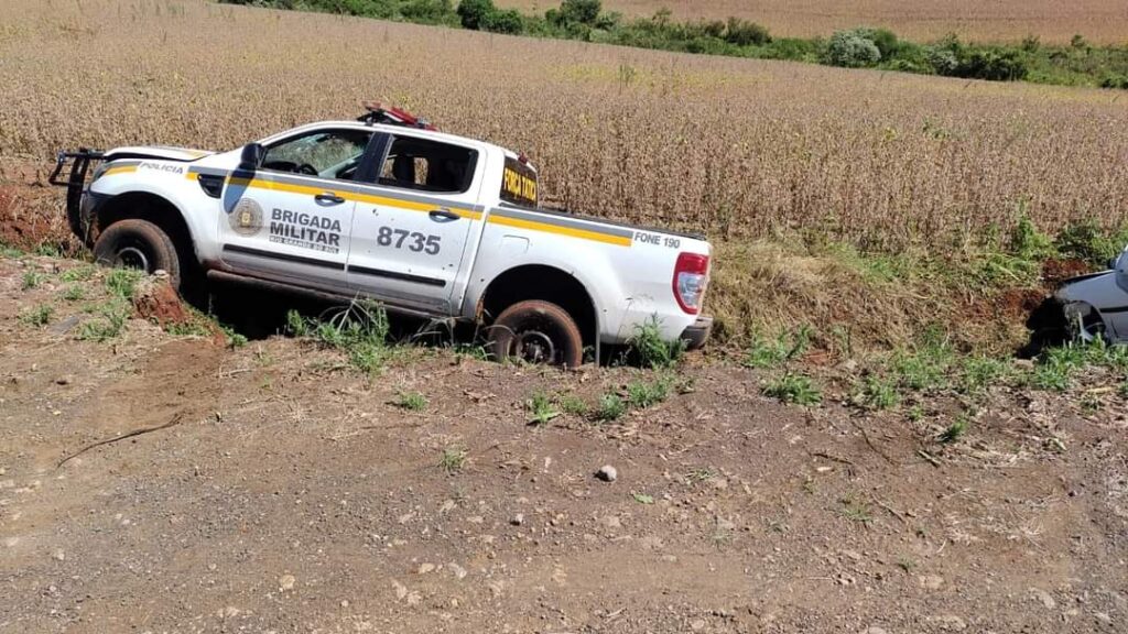 Foi deslocado ao local e tentado efetuar a abordagem do veículo VW/GOL, cor branca, que fugiu do local em alta velocidade pela RS-569, as guarnições fizeram o acompanhamento e em dado momento no KM1, o veículo e viatura se perderam, vindo os dois carros a se acidentar.