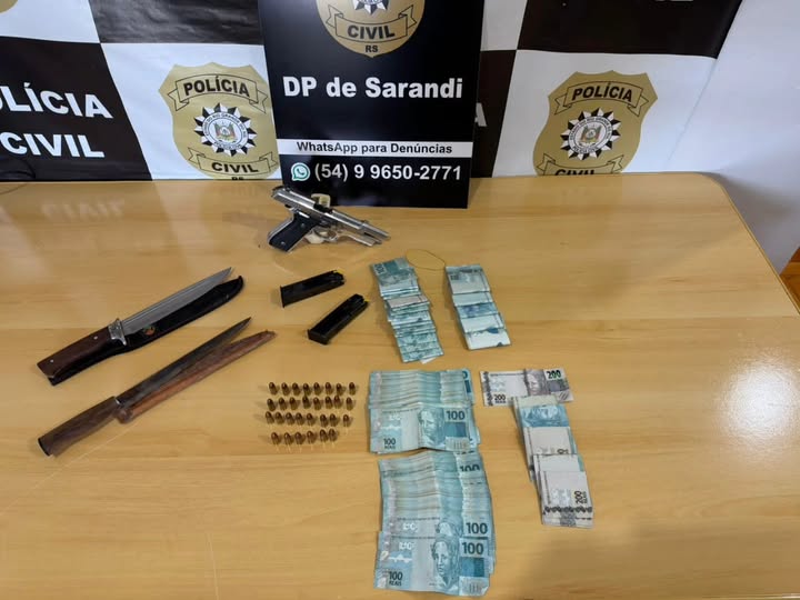 Durante a operação, os agentes localizaram uma pistola calibre 9mm com diversas munições, além de cerca de R$ 38 mil em dinheiro vivo, cuja procedência não foi explicada pelo investigado.