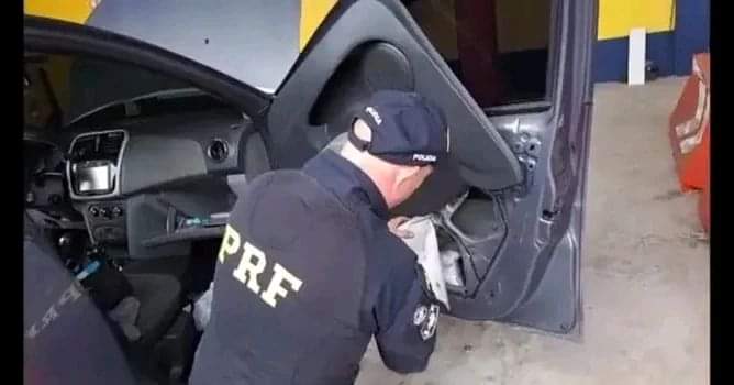 A equipe PRF foi então ao encontro do veículo e efetuou a abordagem. Os dois homens que estavam no carro ficaram muito nevosos e apreensivos, instante em que os agentes decidiram vistoriar o Logan, encontrando a droga oculta nas portas dianteiras e no compartimento do motor.