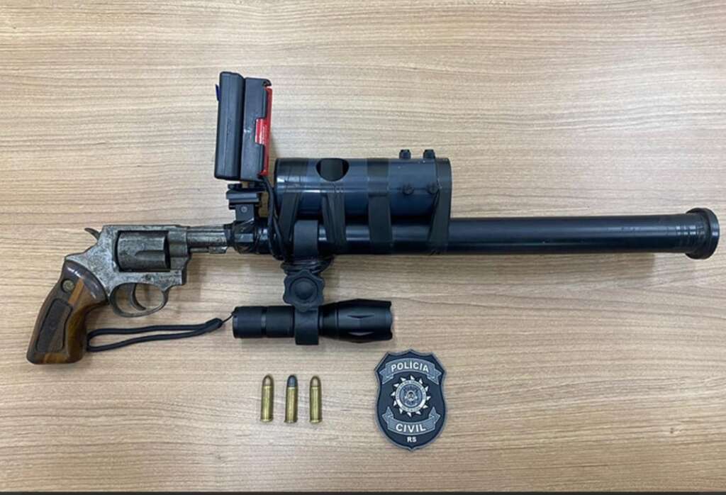 Durante o cumprimento de um mandado de busca e apreensão (MIBA), os policiais localizaram um revólver Taurus calibre .38, cuja numeração estava raspada. A arma possuía silenciador artesanal, luneta, lanterna e visor digital, além de uma câmera acoplada com visão noturna. Também foram apreendidas três munições do mesmo calibre.